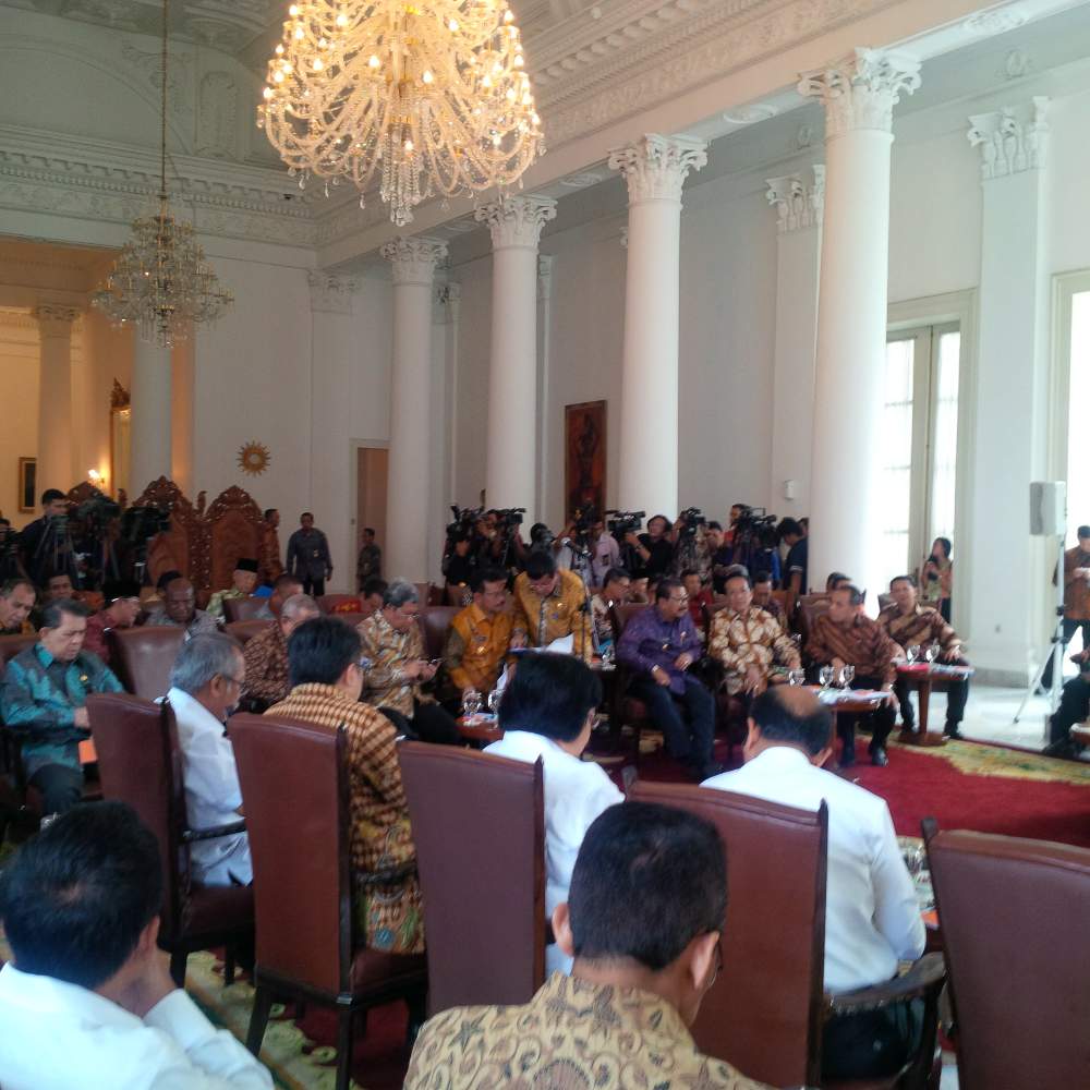 @setkabgoid tweeted: selamat pagi tweeps, pagi ini pkl diagendakan pertemuan presiden RI dgn pr gubernur di istana bogor #pertemuan